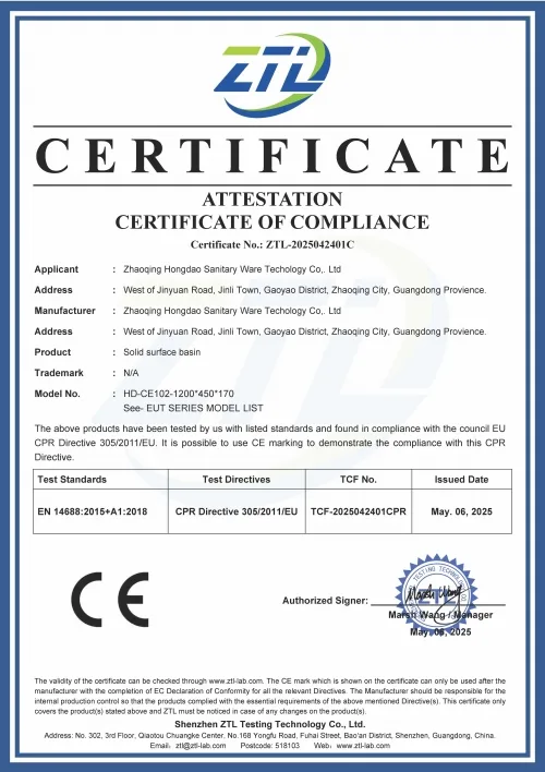 With 21 years of industry expertise, Zhaoqing Hongdao Sanitary Ware Technology is a leading Chinese manufacturer specializing in the R&D, production, and sales of solid surface sanitary ware. We have a strong global presence, exporting our products to more than 80 countries across Europe, North America, Australia, the Middle East, and Southeast Asia.
