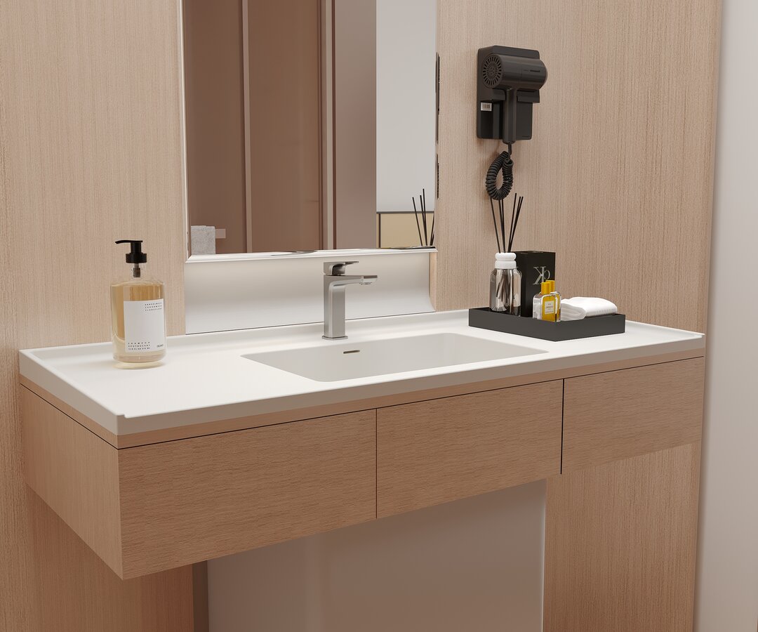 We are a professional manufacturer specializing in cultured marble (cast marble) bathroom products for hotels, apartments, and large-scale residential projects.