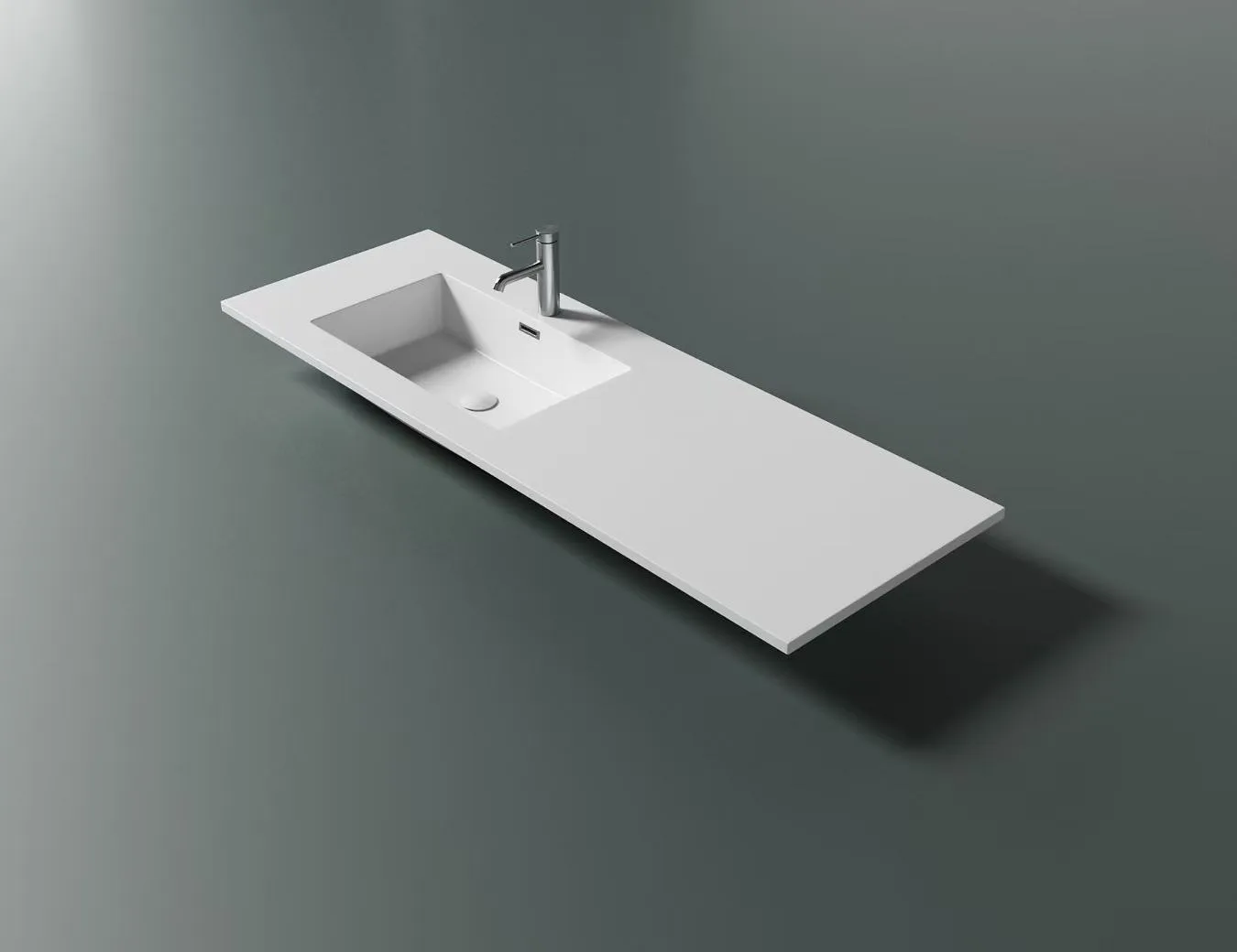 In modern industrial and minimalist architectural design, the demand for concrete-inspired textures and moody color palettes is at an all-time high. Introducing our premium Matte Grey Solid Surface Vanity Top. Engineered specifically for boutique hotels, luxury resorts, and high-end residential developments, this architectural masterpiece features a sleek offset rectangular basin, providing a massive, uninterrupted counter space for guest experiences. By specifying a Matte Grey Solid Surface Vanity Top, architects and developers can achieve a sophisticated, monolithic look while ensuring the superior durability and hygiene of non-porous stone resin.